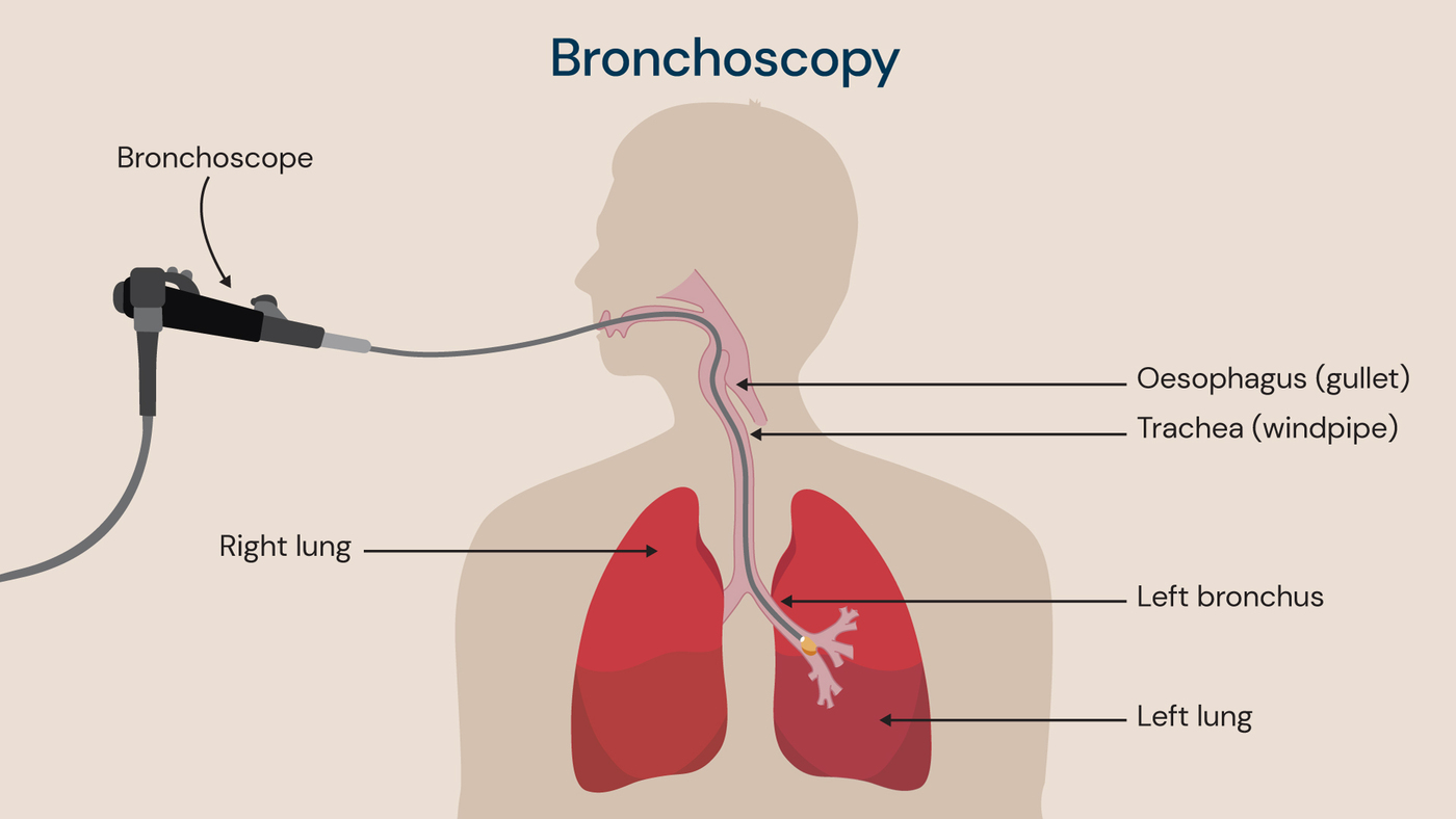 A bronchoscopy is an investigation that examines the inside of your airways and your lungs, using a thin flexible tube with a camera at its end, called a bronchoscope. Our lung specialists can take samples of cells (called a biopsy) during a bronchoscopy to check if they are cancerous.