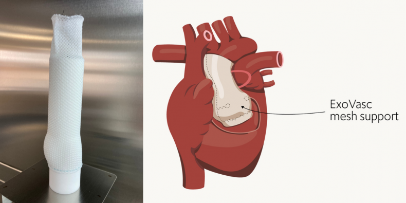 The ExoVasc mesh support utilises advanced medical imaging and computer-assisted 3D printing to create a precise model of the patient’s aorta and aortic valve that is personalised to the unique anatomy of the patient. This model is then used to form the textile ExoVasc implant. The ExoVasc textile implant created has 0.7mm pores which enable the patient’s cells to enter and adhere it firmly to the patient’s tissues for greater long-term durability.