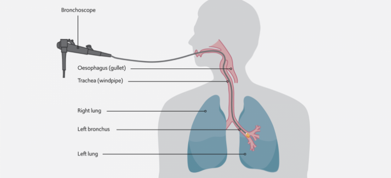 Endobronchial cryotherapy uses a bronchoscope – a flexible tube-like device with a camera at its end – to reach the part of the airways affected by cancer and apply a cryogen – a substance that produces very cold temperatures between -78°C and -187°C – from its tip directly to the cancer to kill it.
